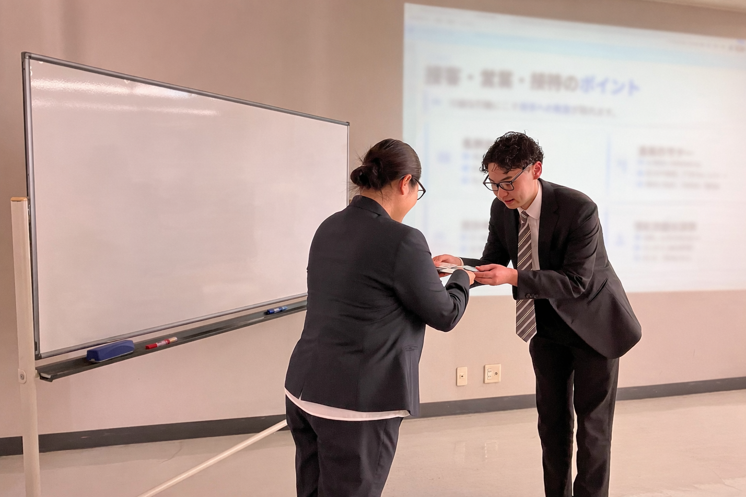 対面研修ではマナー講習と、